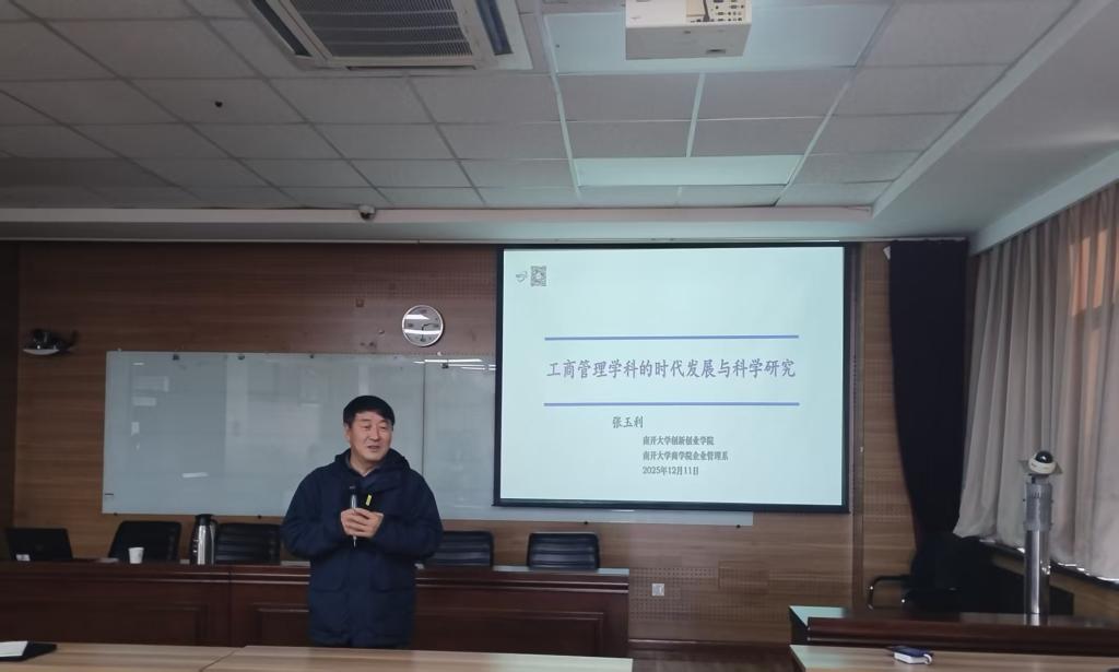 2025年12月11日,南开大学张玉利教授到我院进行学术讲座,开展了题为“工商管理学科的时代发展与科学研究”的学术讲座。讲座由我院学术院长刘伟华教授主持,学院50余名师生参加。