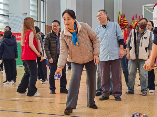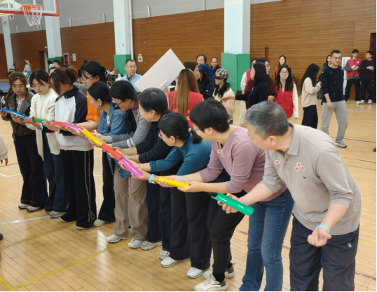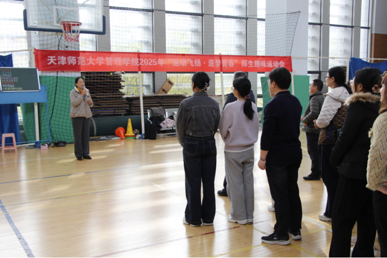 2025年11月6日,管理学院“运动飞扬·逐梦青春”师生趣味运动会在体育馆F区训练房热烈举行。活动由学院工会和团委共同主办,2025级新生代表及全体教职工参与活动。