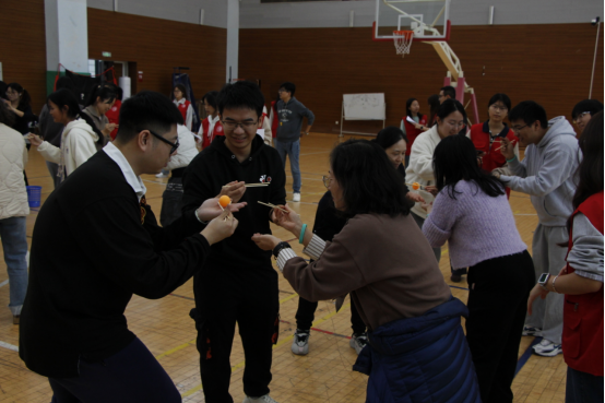运动会共组建了八支参赛队伍,包括学院七个专业系和大数据科学研究院代表队。比赛设置了六个趣味项目:“沙包奇袭”考验投掷精准度;“毽羽跃动”展现团队协作;“筷乐星球”锻炼稳定配合;“同心同行”注重默契传递;“能量轨道”强调团队衔接;“龙腾绳战”彰显节奏协调。各项目在工作人员示范后有序开展。赛场上,各参赛队伍团结协作、奋勇争先,展现出良好的精神风貌。工作人员恪尽职守,确保赛事顺利进行。